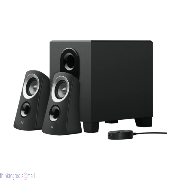| Technical Specifications | Total Watt (RMS): 25 W Subwoofer: 15 W Satellites: 2 x 5 W 3.5 mm input: 1 Headphone Jack: 1 Controls: Power and volume controls on wired control pod |